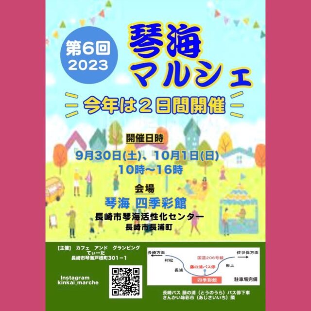 琴海マルシェ出店します!お知らせ トップ お知らせ ぴょん吉日記 ・【第6回琴海マルシェ】 9月30日(土)10月1日(日) 長崎市長浦の琴海色彩館で開催! 色んなお店が出て楽しいですよ♪ こころ工房は1日(日)のみ出店します。 「住宅相談会と木っずいす」のワークショップをします! みんな来てね!! 琴海マルシェ てぃーださん TweetTumblr で共有 No.639 | 2023年9月24日 « お家の学校開催! 料金トラブル »